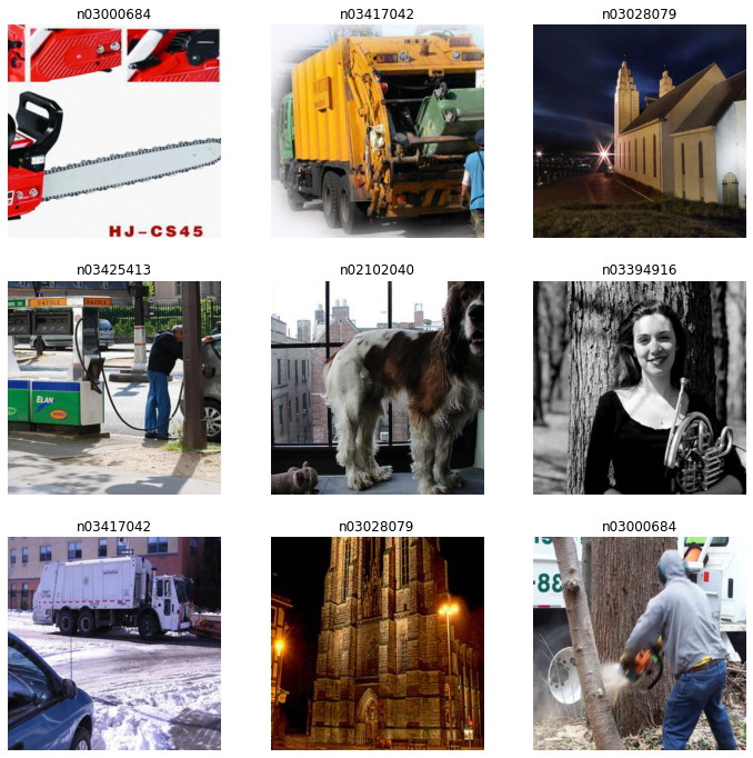 Imagenette is split into 9,469 training images and 3,925 validation images. Following the Imagenette leaderboard, I will evaluate model performance using accuracy.