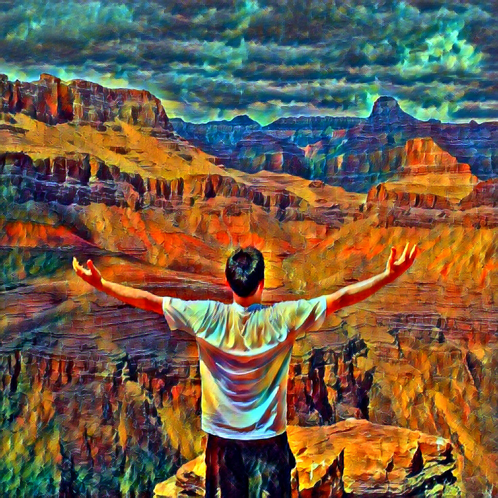 Style transfer of the author at the Grand Canyon. Style source: Way To Home by Leonid Afremov. I’m Benjamin Warner, a Machine Learning Engineer and AI Researcher. I write about deep learning topics which catch my interest.